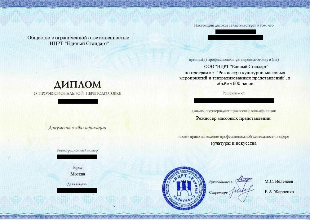 - Диплом о профессиональной переподготовке установленного образца. Срок действия: бессрочно